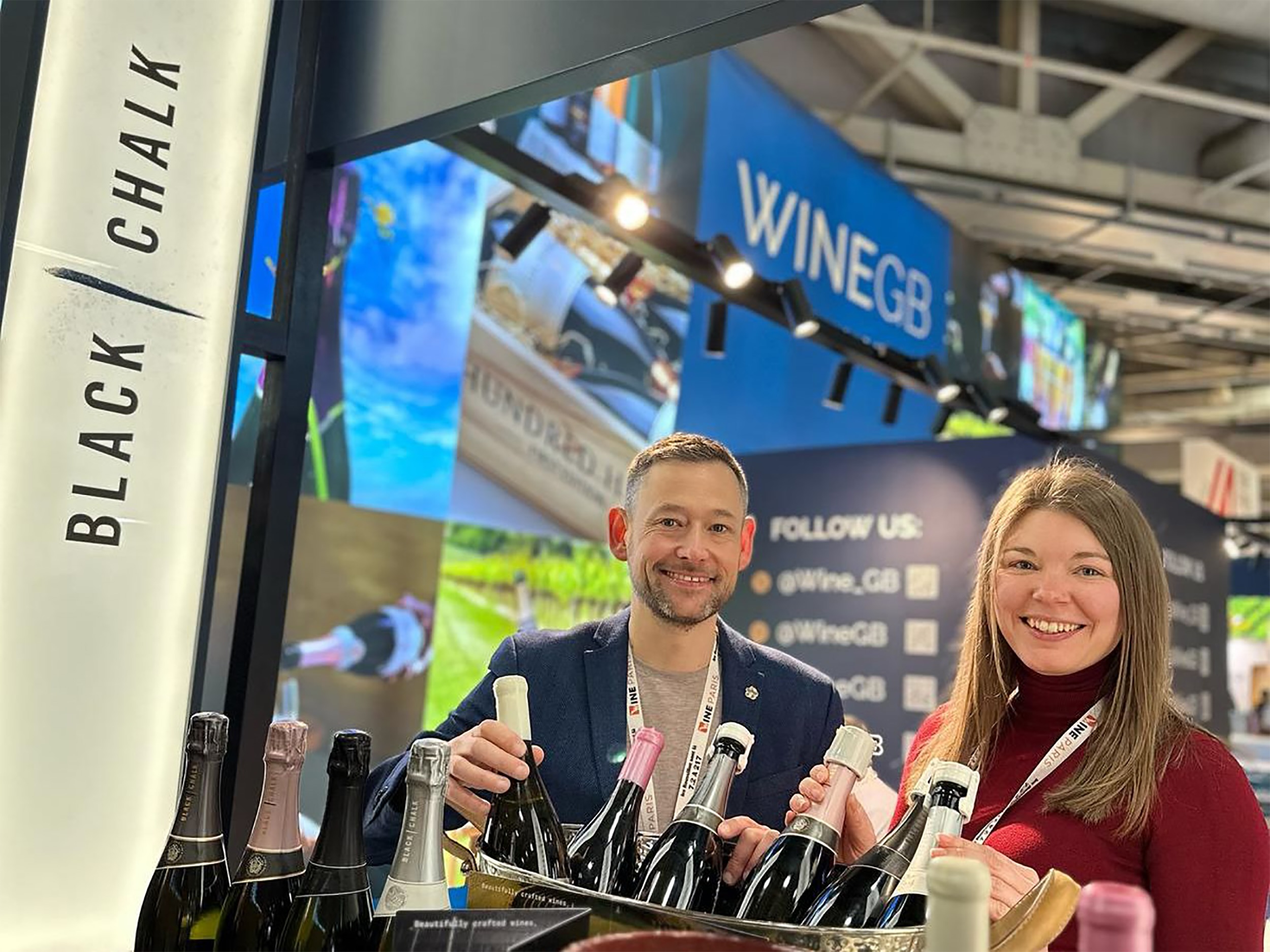 WineGB producer line-up at Wine Paris 2026: Balfour, Black Chalk, Bluestone Vineyards, Chapel Down, Domaine Evremond, Exton Park, Gusbourne, Hattingley Valley, Henners, Langham, Leonardslee Family Vineyards, Rathfinny, Ridgeview, Roebuck Estates, Simpsons and Wiston.