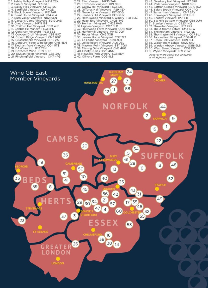 • WineGB South East exists to support the commercial and practical needs of producers in the region, home to over 50% of England’s planted vineyard area.